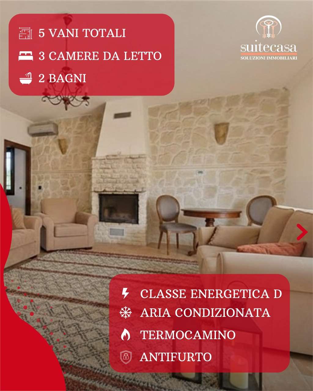 Comfort Termico: Climatizzazione completa e suggestivo termocamino per calde serate invernali.
